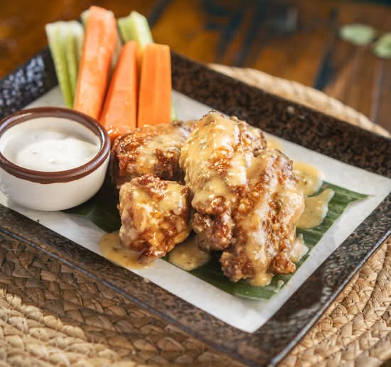 Chicken wings coated in your choice of sauce. Served with fresh celery and carrots. Alitas de pollo bañadas con la salsa de tu preferencia. Acompañadas de apio y zanahoria fresca.